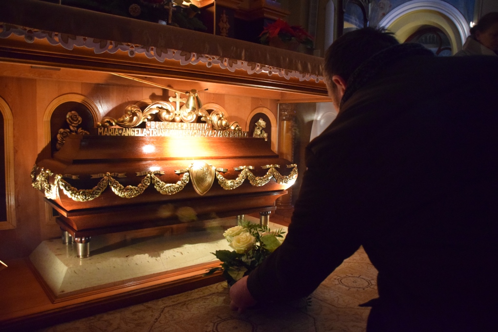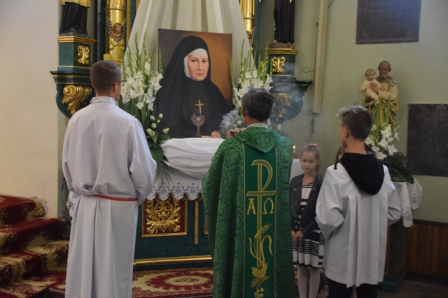 „Pełnienie Woli Bożej lepsze jest niż najwyższe stopnie modlitwy, niż wszystkie zachwycenia najcudowniejsze.” – powiedziała bł. Angela Truszkowska. Parafia Brzeziny w niedzielę 16 września 2018 r. przeżywała uroczystość wprowadzenia jej relikwii do kościoła. Dokonały tego jej duchowe córki, Siostry Felicjanki z Krakowa. Relikwie na ręce ks. Kanonika Józefa Knapa przekazała s. Alina Płoszczyca, przełożona prowincjalna krakowskiej prowincji sióstr felicjanek, która przybyła z delegacją pięciu sióstr. Relikwiarz bł. Angeli ufundowała rodzina Łodejskich. W uroczystości wzięło udział małżeństwo z Kanady, które gościło w Brzezinach w czasie Światowych Dni Młodzieży. Oprawę uroczystej mszy świętej przygotowała schola, chór parafialny oraz uczniowie ze szkoły w Brzezinach. Życie nowej patronki, podczas każdej niedzielnej mszy św. przybliżała wiernym s. Marta Zielińska, Dyrektorka Muzeum i Archiwum bł. Angeli. Stwierdziła, że „bł. Maria Angela Truszkowska wkracza do tej parafii i znajduje się tu we wspaniałym towarzystwie. (…) Uzupełnia sobą następny element pięknej mozaiki jaką tworzą wszyscy święci. Każdy ze świętych jest jedynym w swoim rodzaju kamykiem Bożej chwały. Bez niego nie byłoby pełnego obrazu. Patrząc na listę Wszystkich Świętych, znajdujemy przepiękne, jaśniejące przykłady pokory w życiu, miłości w służbie, męstwa w męczeństwie, wierności w małżeństwie, gorliwości i posłuszeństwa Bożym wezwaniom. (….) Myślę, że najpiękniejszymi blaskami jej [bł. Angeli] duchowości są trzy odcienie, trzy barwy dodające szczególnego piękna do mozaiki chwały Bożej: To umiłowanie Jezusa w Eucharystii, cześć oddawana Niepokalanemu Sercu Maryi, a wszystko w duchu wynagrodzenia. (…) W tej mozaice jest miejsce dla każdego i każdej z nas. Bez nas mozaika nie będzie pełna, a więc… musimy podejmować wysiłek życia w wierności Bogu, aby kiedyż zająć miejsce przeznaczone dla nas. Nie pozwólmy, aby to miejsce zostało puste.” Angela Truszkowska żyła w XIX wieku. Spotkała się z innym patronem brzezińskim, bł. Honoratem Koźmińskim, który przez pewien czas był jej kierownikiem duchowym. Założyła zgromadzenie, którego hasło brzmi: "wszystko przez Serce Maryi na cześć Przenajświętszego Sakramentu". Siostry podjęły się opieki ubogimi. Bł. Angela zmarła na chorobę nowotworową. Jest patronką osób chorych. Ufamy, że przeżyta uroczystość przybliży wszystkich do Jezusa w Eucharystii, którego tak bardzo ukochała nowa patronka brzezińska.
