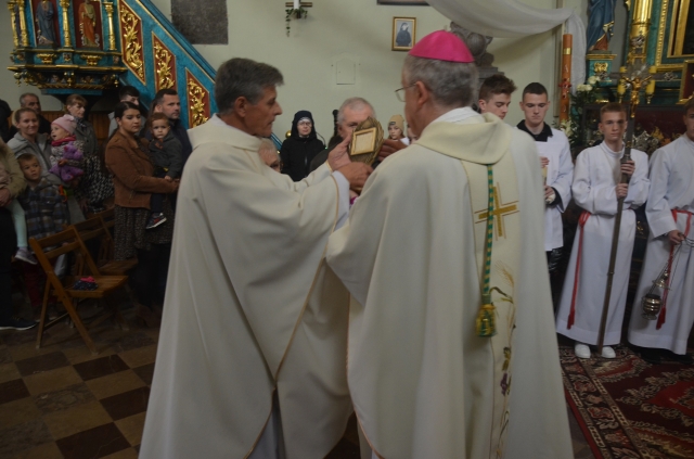 Uroczystość Rocznicy Poświęcenia Kościoła Własnego 30 października 2022 r. miała wyjątkowy charakter przez wprowadzenie przez ks. bpa Andrzeja Kaletę do świątyni w Brzezinach relikwii świętych Krescencjusza, Zenona i Towarzyszy. Parafia otrzymała je od abpa Tadeusza Wojdy i zostały umieszczone w specjalnie wykonanym relikwiarzu ufundowanym przez rodzinę z Brzezin. Oprawę liturgii przygotowała schola parafialna oraz uczniowie Szkoły Podstawowej w Brzezinach. „Święty Krescencjusz oraz Zenon i jego Towarzysze, wszyscy oni żyli na przełomie III i IV wieku. Ponieśli męczeńską śmierć, bo nie zaparli się wiary w Pana Jezusa. Krescencjusz był zaledwie chłopcem, a Zenon żołnierzem i zginął wraz z ponad dziesięcioma tysiącami innych w czasie, powiedzielibyśmy czystki, jaką ówczesny cesarz polecił przeprowadzić w Armii Rzymskiej, pragnąc pozbyć się chrześcijan.” – mówił w homilii ks. biskup – „Czy dziś w XXI wieku ma jeszcze sens kult relikwii? Odpowiedzią na takie pytanie mogą być słowa homilii św. Jana Pawła II, który w setną rocznicę kanonizacji św. Rity, 20 maja 2000 roku, tak powiedział: Śmiertelne szczątki świętych i błogosławionych, które czcimy są znamiennym znakiem, czego może dokonać Pan w ludzkiej historii, kiedy napotka pokorne serca otwarte na jego miłość. Błogosławieni głęboko zakorzenieni w miłości Chrystusa znaleźli w swej wierze niezachwianą moc. Na ich przykładzie całkowitego zawierzenia Bogu w przeczystej prostocie i niezłomnej wierności Ewangelii, także i my możemy odnaleźć jasne wskazanie, jak być, zwłaszcza w dzisiejszym świecie autentycznymi świadkami Chrystusa. Drodzy a zatem relikwie świętych są przede wszystkim znakiem ich nadprzyrodzonej obecności pośród nas. Oddając cześć relikwiom, ostatecznie czcimy owych świętych, a przez to wielbimy samego Pana Boga, który jest źródłem wszelkiej świętości i uświęca każdego człowieka”. Uroczystą eucharystię zakończyło uczczenie relikwii, a każdy uczestniczący otrzymał pamiątkowy obrazek. Święci męczennicy dołączyli tego dnia do licznego grona patronów brzezińskich. Ciekawostką jest, że za ołtarzem głównym w Brzezinach znajduje się tablica pamiątkowa konsekracji kościoła z 1675 roku, w której wspomniano, że w mensie ołtarzowej znajdują się relikwie św. Krescencjusza i Euzebiusza. Niech męstwo, wiara i oddanie męczenników będą przykładem do naśladowania.