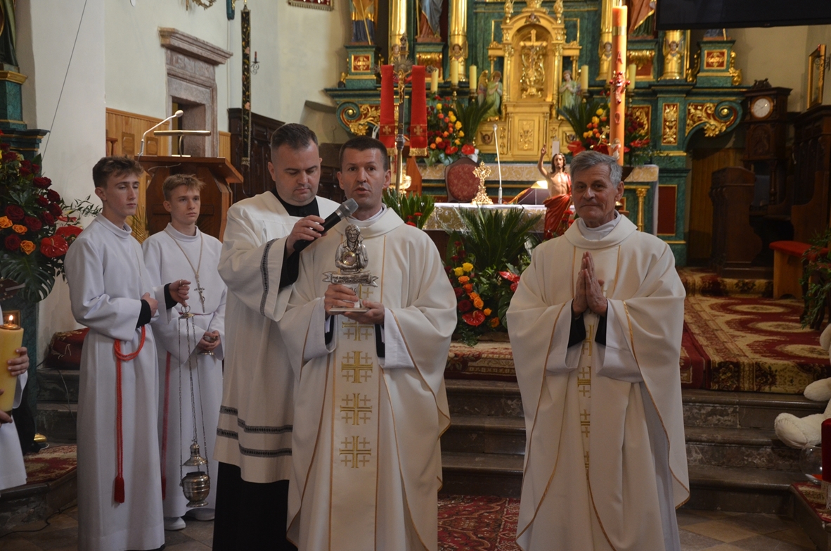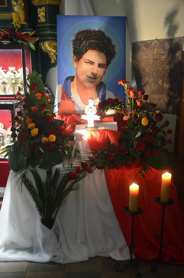 W 1058 rocznicę chrztu Polski – 14 kwietnia 2024 r. do grona brzezińskich patronów dołączył prawdziwy świadek Boży – bł. Carlo Acutis. Jego relikwie wprowadził ks. Paweł Ścisłowicz, dyrektor Wydziału Katechetycznego Diecezji Kieleckiej. Relikwiarz ze słowami błogosławionego: Być zawsze blisko Boga, to jest mój plan na życie, został ufundowany przez rodzinę z Kowali. Trudno pojąć jak to możliwe, że przez 15 lat bł. Carlo potrafił osiągnąć taki poziom świętości. Podejmował dzieła miłosierdzia, ewangelizował, pocieszał, dawał świadectwo życiem. Ukochał Eucharystię i modlitwę różańcową. A przy tym wszystkim był zwykłym chłopakiem. Kiedy poznał okrutną diagnozę, nie załamał się, ale przyznał „Jestem szczęśliwy, że mogę umrzeć, ponieważ przeżyłem swoje życie, nie marnując ani minuty na rzeczy, które nie podobają się Bogu”. Po kilku dniach zmarł… ale po to, aby żyć wiecznie.