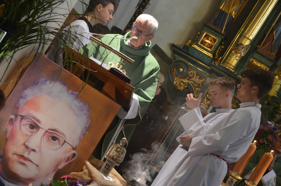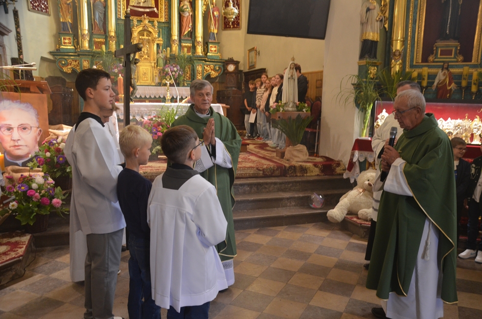 Dzień po Święcie Podwyższenia Krzyża Świętego, w niedzielę 15 września 2024 r. parafia pw. Wszystkich Świętych w Brzezinach powitała w swym kościele męczennika, obrońcę Krzyża Chrystusowego. Ks. kanonik Marek Podyma wprowadził relikwie bł. ks. Władysława Findysza. Nowy patron urodził się na początku XX wieku. Był gorliwym duszpasterzem w kilku parafiach. W czasie II Wojny Światowej niósł pomoc potrzebującym. Jego zaangażowanie duszpasterskie w czasach komunizmu naraziło go na prześladowania ze strony władz. Skrajnie wyczerpany więzieniem zmarł niedługo po uwolnieniu w 1964 r. Podczas homilii ks. Marek Podyma odniósł życie nowego patrona do niedzielnej Liturgii Słowa. Stwierdził że „na firmamencie nieba pojawiają się wciąż nowe gwiazdy świętych, wśród nich bł. Władysław Findysz, aby ich blask oświecał w ciemności współczesnych czasów nasze życie, kiedy wątpimy. (…) Byli i są ludzie, którzy szli i idą drogą Chrystusowego krzyża, i nie tylko wskazują drogę innym, ale idą tą drogą sami.” Na koniec Eucharystii każdy mógł ucałować relikwie nowego patrona i otrzymać pamiątkowy obrazek. Niech bł. Władysław Findysz przypomina nam, że jedynym naszym Panem jest Jezus Chrystus i to w Jego Krzyżu jest zwycięstwo!
