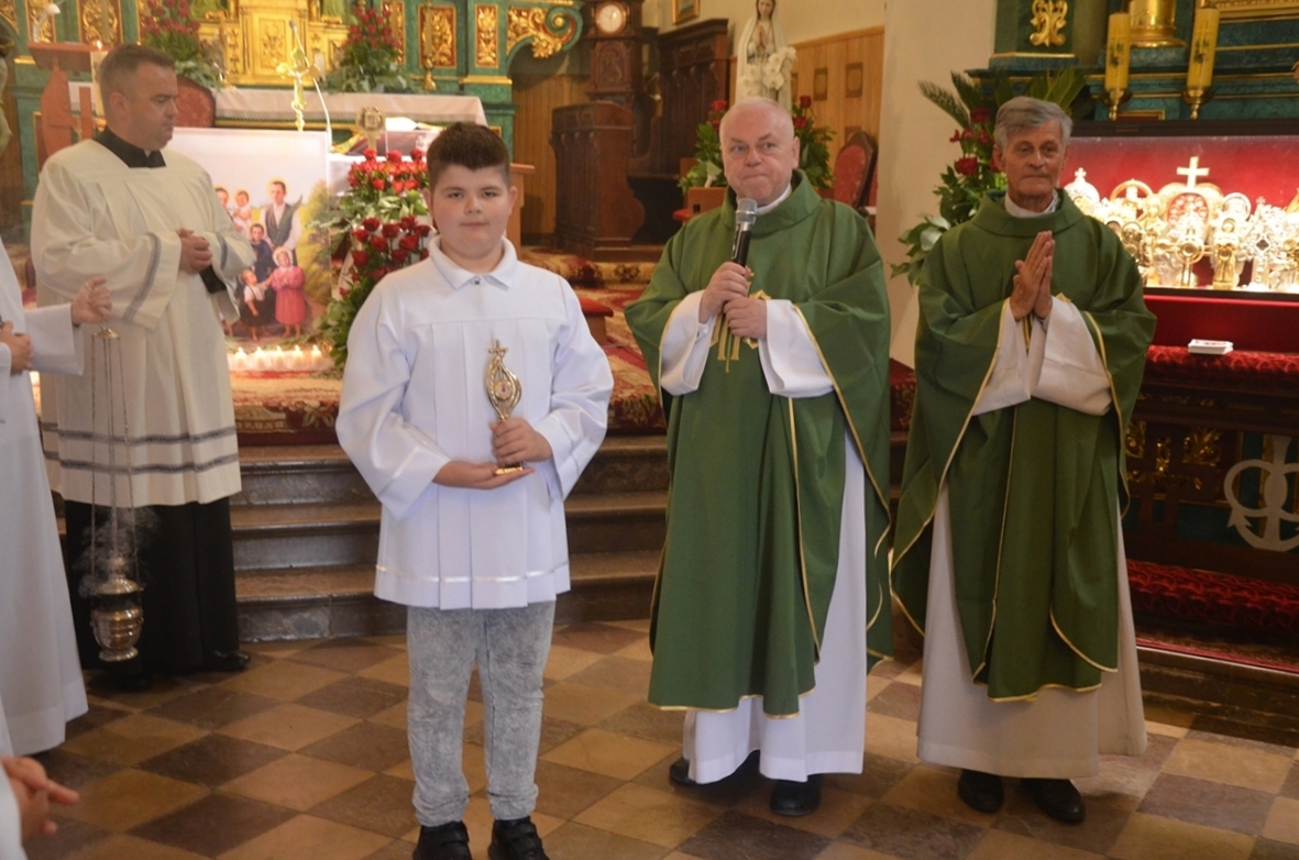 W niedzielę 30 czerwca 2024 r. ks. dr Stanisław Słowik, dyrektor Caritas Diecezji Kieleckiej wprowadził do kościoła w Brzezinach relikwie 9 błogosławionych członków Rodziny Ulmów. Odbyło się to przy śpiewie hymnu beatyfikacyjnego. Relikwie znajdują się w posrebrzanym relikwiarzu ufundowanym przez rodzinę z Brzezin. Podczas uroczystości zostały umieszczone na specjalnie przygotowanym ołtarzyku z wizerunkiem Rodziny Ulmów i 9 płonącymi świecami. Podczas homilii ks. Stanisław Słowik przybliżył drogę nowych patronów brzezińśkich do świętości oraz ich szczególną troskę o życie. Na koniec Eucharystii pobłogosławił wiernych relikwiami. Józef i Wiktoria Ulma wzięli ślub w 1935 roku w Markowej. Żyli podobnie jak inni rolnicy w okolicy, ale nie byli tuzinkową rodziną. Byli przykładną, chrześcijańską rodziną. Doczekali się sześciorga dzieci, a w 1944 roku Wiktoria była w zaawansowanej ciąży z siódmym potomkiem. Zdecydowali się na heroiczny czyn – ukrywanie przed Niemcami grupy Żydów. Trwało to prawdopodobnie około 1,5 roku aż do nocy z 23 na 24 marca 1944 r. Wtedy do Markowej przyjechało kilku żandarmów niemieckich i granatowych policjantów. Rozstrzelali ukrywających się Żydów. Następnie zamordowali Józefa i Wiktorię, która zaczęła rodzić. Ostatnie strzały padły w kierunku wszystkich dzieci Ulmów. W kilka chwil zamordowano 17 osób. Błogosławiona Rodzino Ulmów: Józefie, Wiktorio, Stanisławo, Barbaro, Władysławie, Franciszku, Antoni, Mario i Dziecko pod sercem Matki rodzone w męczeństwie – módlcie się za nami!