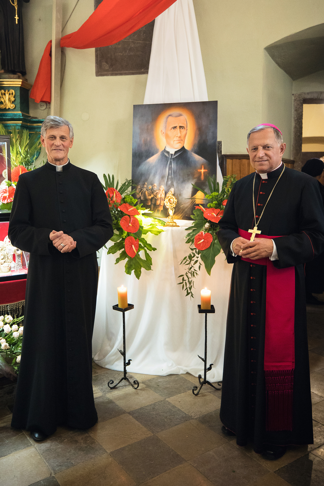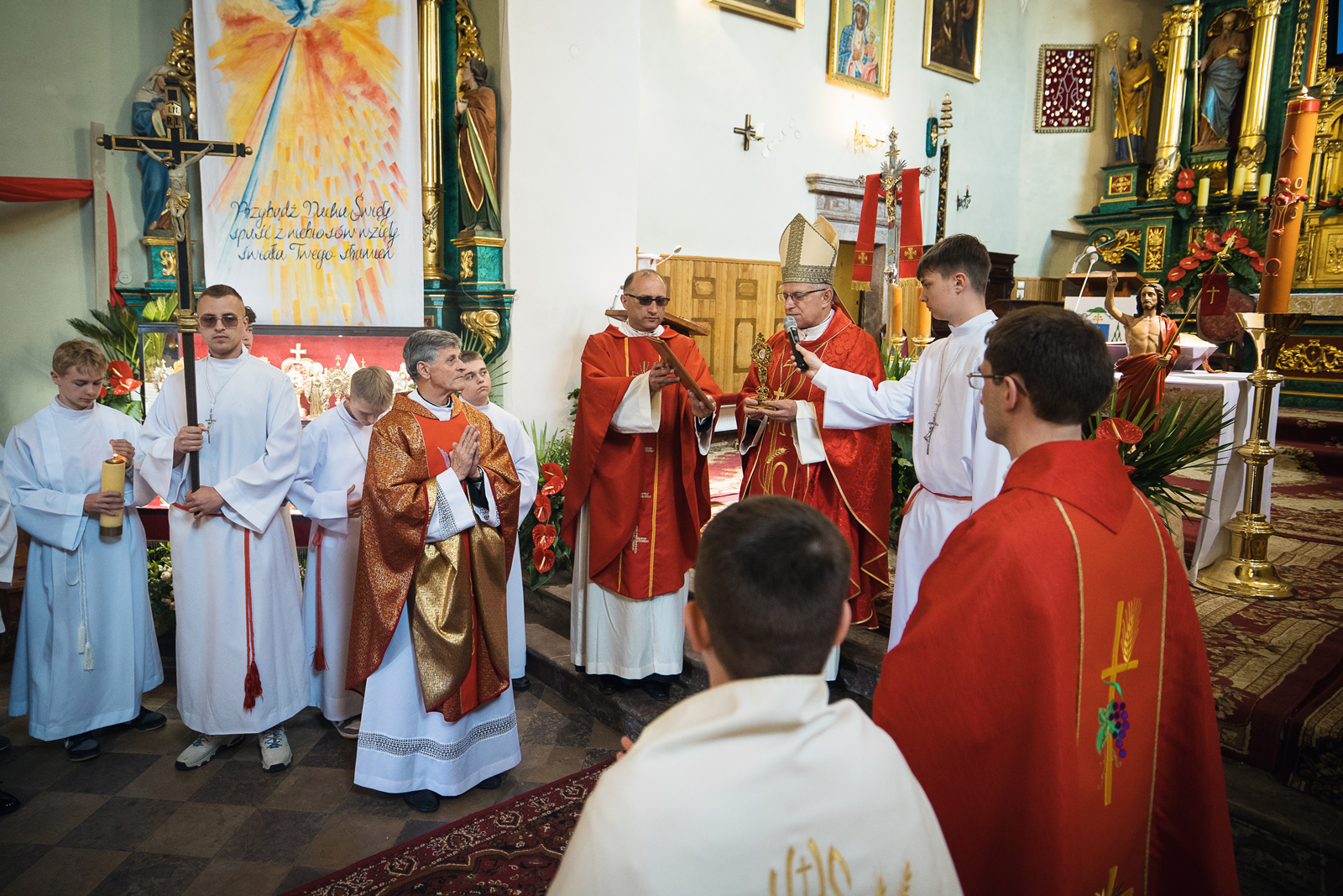 W piątek 2 maja 2025 r. parafia pw. Wszystkich Świętych w Brzezinach gościła lwowskiego arcybiskupa Mieczysława Mokrzyckiego. W parafialnym kościele przewodniczył podwójnej uroczystości. Udzielił sakramentu bierzmowania 42 młodym osobom oraz wprowadził relikwie św. Zygmunta Gorazdowskiego. Relikwiarz do świątyni, ufundowany przez bierzmowanych, wniósł ich przedstawiciel Karol Zegadło. Później Ksiądz Arcybiskup oficjalnie przekazał relikwie na ręce ks. kanonika Józefa Knapa. Podczas homilii Ks. Arcybiskup zwracając się do młodych dał im przykład dojrzałej postawy wiary 17-letniego Egipcjanina. 31 października 2011 roku młody kopt, z wytatuowanym krzyżem na nadgarstku, został zmuszony przez muzułmańskiego nauczyciela do zasłonięcia znaku wiary. Gdy nie chciał tego zrobić został przez niego i kolegów z klasy śmiertelnie pobity. Jak wielkim świadectwem było wytrwanie w wierze i nie zawiedzenie Jezusa. Abp Mokrzycki przybliżył także zebranym na uroczystości postać św. Zygmunta: Jego życie było żywym przykładem tego, czym jest wypełnianie przykazania miłości Boga i bliźniego. Od młodości doświadczał cierpienia. Ciężka choroba niemal zabrała mu życie. Jednak to doświadczenie nauczyło go wielkiej wrażliwości na ludzką biedę i krzywdę. Zygmunt zrozumiał, że życie jest darem, którego nie można zmarnować, ale trzeba je oddać na służbę innym. (...) Patrząc na jego przykład uświadamiamy sobie, że świętość nie polega na wielkich gestach, ale na codziennej wierności, trosce o drugiego człowieka, cierpliwym niesieniu pomocy, słuchaniu, pocieszaniu, oddawaniu swojego czasu tym, którzy najbardziej go potrzebują. (...) W świecie, który tak często mówi o samowystarczalności i sukcesie, św. Zygmunt przypomina nam, że prawdziwą wielkość człowieka mierzy się miłością. Piękną oprawę liturgii przygotowała młodzież bierzmowana pod opieką ks. Mariusza Kałki. Śpiew na Eucharystii został wzbogacony przez scholę parafialną. Na koniec Eucharystii ksiądz arcybiskup powiedział: Dziękuję wam wszystkim za to piękne świadectwo waszej wiary, waszej miłości do Kościoła, do świętych obcowania. Wy już nie musicie iść do Nieba, bo Niebo zeszło tutaj do Was. Jesteście uprzywilejowani, bo macie tylu świętych patronów, którzy z pewnością modlą się za was i wypraszają potrzebne łaski. Wystarczy tylko na nich spojrzeć i westchnąć - Wszyscy Święci i Święte Boże módlcie się za nami! I gratuluję wam tak pięknej idei, tak pięknej świątyni. Święty Zygmunt Gorazdowski był kapłanem żyjącym na przełomie XIX i XX w na ziemi lwowskiej. Założył Zgromadzenie Sióstr Miłosierdzia św. Józefa, zwane popularnie józefitkami. Nowy patron podejmował różne inicjatywy ewangelizacyjne i dobroczynne. Pomagał ubogim i sam żył ubogo. Zmarł w wieku 75 lat. Został beatyfikowany i kanonizowany ze swoim biskupem Józefem Bilczewskim – również brzezińskim patronem. Niech Św. Zygmunt Gorazdowski oręduje za młodzieżą bierzmowaną, aby z odwagą wyznawali swoją wiarę i dążyli do świętości. Niech uprasza potrzebne łaski wszystkim, którzy wezwą jego orędownictwa.