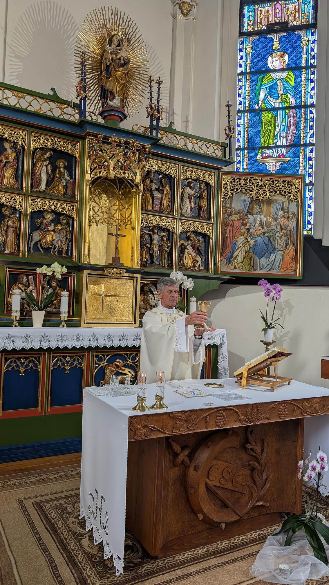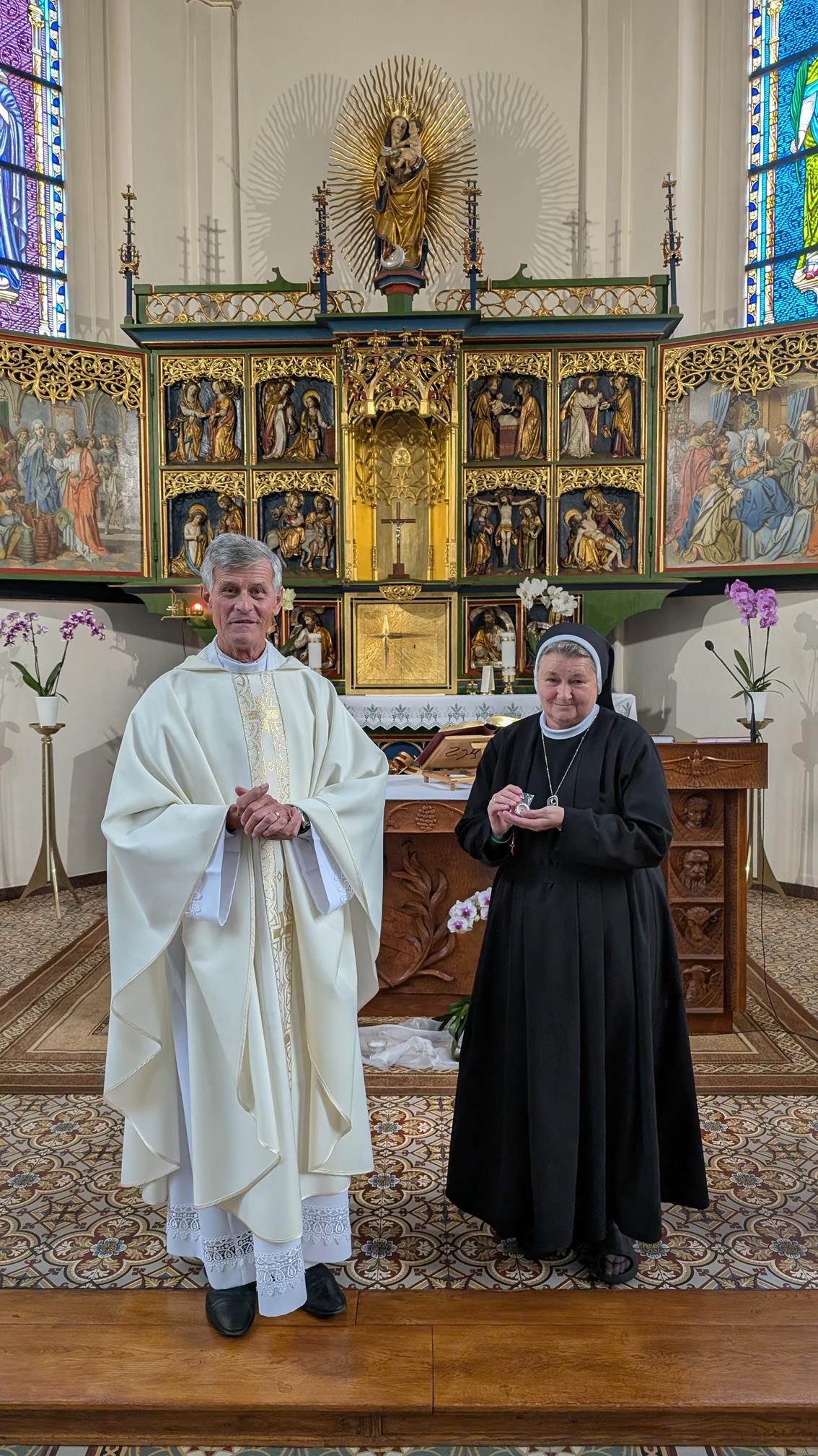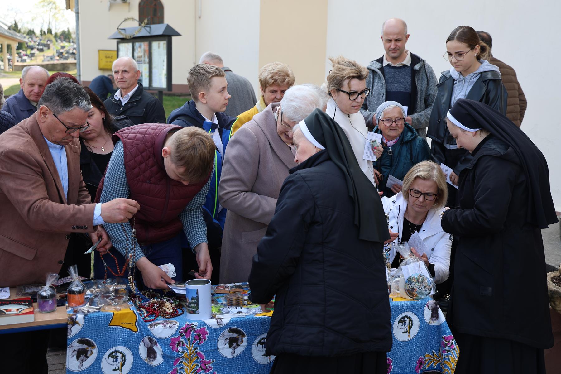 W Niedzielę Biblijną 19 kwietnia 2026 r. Parafia Brzeziny przyjęła relikwie Błogosławionych Sióstr Męczennic Warmińskich. Do świątyni wprowadziły je ich duchowe siostry ze Zgromadzenia św. Katarzyny Dziewicy i Męczennicy z Braniewa. W zeszłym roku w maju Kościół w Polsce cieszył się z beatyfikacji Sióstr Katarzynek. Relikwiarz dla Bł. Sióstr ufundowała osoba z Kowali. Po wprowadzeniu do kościoła został ustawiony na specjalnie przygotowanym ołtarzu. Jego dekorację stanowił krzyż z palmą - symbol męczeństwa oraz 15 czerwonych kwiatów - symbol zbyt wcześnie ściętego życia. Ołtarzyk nawiązywał do tegorocznego wystroju Grobu Pańskiego w Brzezinach, który przypominał ewangeliczną radę "Miłujcie swoich nieprzyjaciół i módlcie się za tych, którzy was prześladują" oraz zachęcał do modlitwy o pokój, słowami św. Franciszka z Asyżu. Ofiarę i misję Błogosławionych Męczennic przybliżyła podczas Eucharystii s. Róża Rusak CSC, mówiła - "Kochani jesteście w tej przepięknej świątyni otoczeni chwałą wszystkich Świętych. A dzisiaj chciałbym, żebyście do tego grona wzięli też nasze Błogosławione Męczennice, s. Krzysztofę i jej XIV Towarzyszek. To są ofiary II wojny światowej. To są ofiary męczeństwa Armii Czerwonej, która wkraczając na tereny Mazur, Powiśla, Pomorza miała taki przykaz 'zniszczcie wszystko, co napotkacie na drodze'. I tak ta armia czyniła. Kiedy 21 na 22 stycznia 1945 r. wkroczyła do Olsztyna, była mroźna wtedy zima. Zaczęło się plądrowanie, gwałty, kradzieże. W szpitalu (dawniej mariackim, obecnie Szpitalu Miejskim) pracowały nasze siostry. Pierwszą ofiarą była s. Krzysztofa, która do końca była przy chorych. Zresztą wszystkie siostry powiedziały tak 'Zostajemy do końca'. Chociaż miały wybór, bo każdy z nas ma jakiś wybór. Mogły uciekać, bo ludność uciekała z tamtych terenów, wiedząc, słysząc, doświadczając jak wielkie okrucieństwo niesie za sobą Armia Czerwona. One zostały do końca. Przypłaciły to śmiercią męczeńską. (...) W czasie wojny zginęło 105 naszych sióstr. Najmłodsza miała tylko 27 lat, najstarsza 65. I choć wojna się skończyła nasze siostry ginęły jeszcze w czerwcu, sierpniu, a ostatnia z nich, w nasze patronalne święto, 25 listopada. To była s. Ksaweria. (...) My dziś wyjedziemy do Braniewa, ale prosimy Was, niech te Siostry zostaną w zacnym gronie wszystkich Świętych. Weźcie chociaż jedną z tych Sióstr do swoich domów, do swoich serc, a zobaczycie, że nie będziecie zawstydzeni, bo one już przynoszą owoce swojej modlitwy wstawienniczej." Po każdej Mszy Świętej wierni mogli za dowolną ofiarę nabyć różne pamiątki i dewocjonalia związane z Błogosławionymi i Zgromadzeniem Sióstr Św. Katarzyny. Parafianie bardzo chętnie rozmawiali i przekazywali intencje modlitewne przybyłym siostrom katarzynkom: s. M. Róży, s. M. Violetcie i s. M. Katarzynie. Błogosławione Męczennice: s. Krzysztofo, s. Liberio, s. Maurycjo, s. Leonis, s. Tiburcjo, s. Sekundino, s. Adelgardo, s. Aniceto, s. Gebhardo, s. Sabinello, s. Bono, s. Gunhild, s. Rolando, s. Caritino i s. Ksawerio – módlcie się za nami!